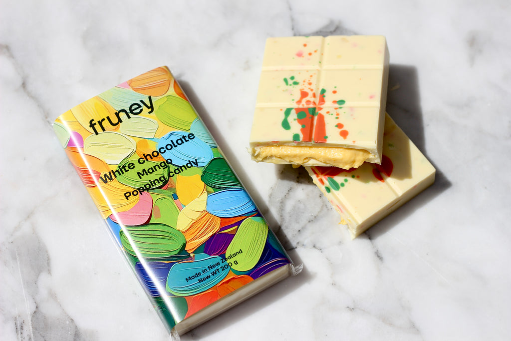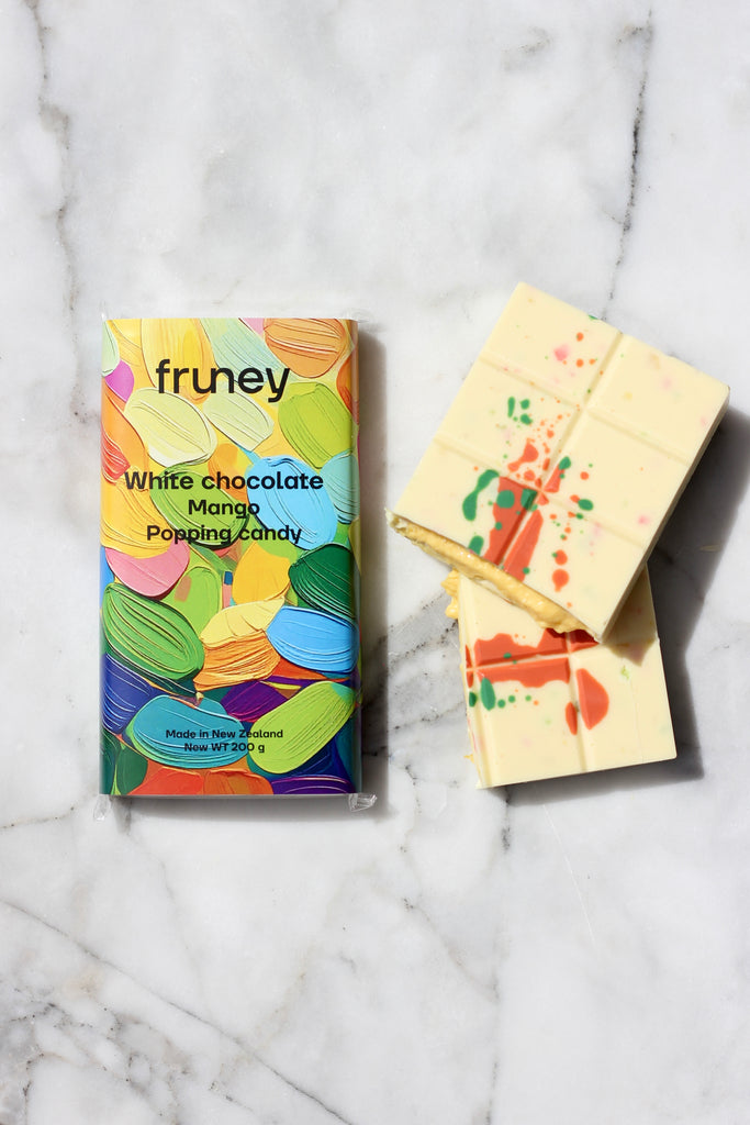 Creamy, handcrafted white chocolate is blended with juicy mango and packed with popping candy that crackles and fizzes with every bite.